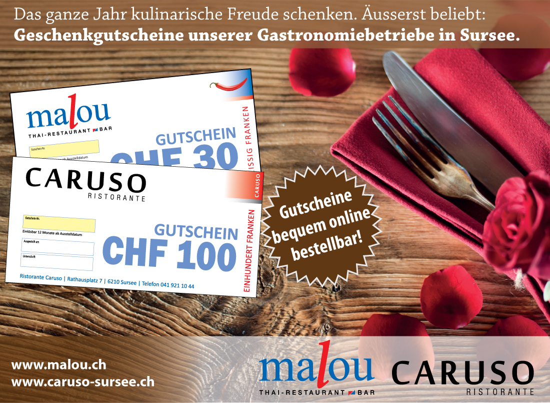 Unsere beliebten Geschenkgutscheine vom malou und Caruso!